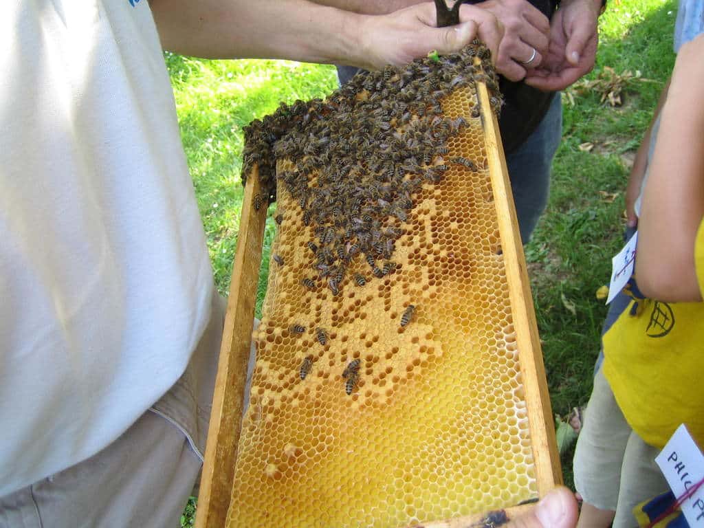 Unsere letzte Heimstunde vor den Sommerferien! Andy lud uns zu sich nach Hause ein, um uns die Bienenzucht von Papa Thomas zu zeigen. Wir lernten aus dem Bienenleben und der Bienenzucht. Im Schaukasten sahen wir sogar die Königin und zum Abschluß gabs einen Löffel Honig frisch aus der Wabe und ein leckeres Honigbrot mit einem Glas Honig als Andenken.