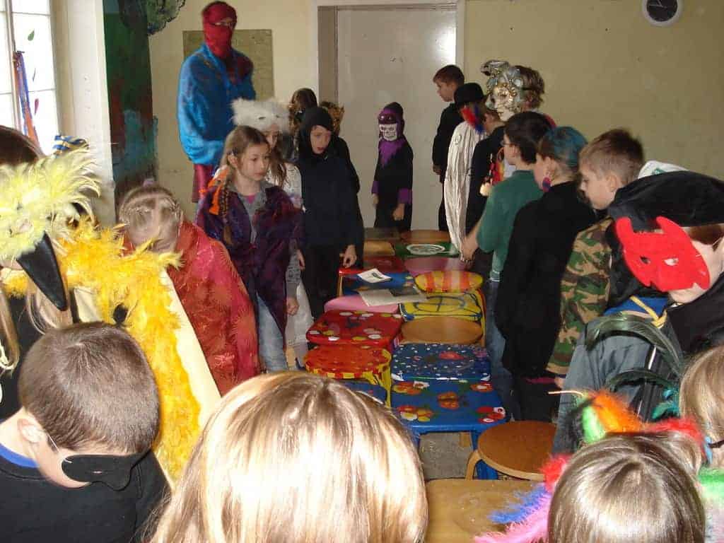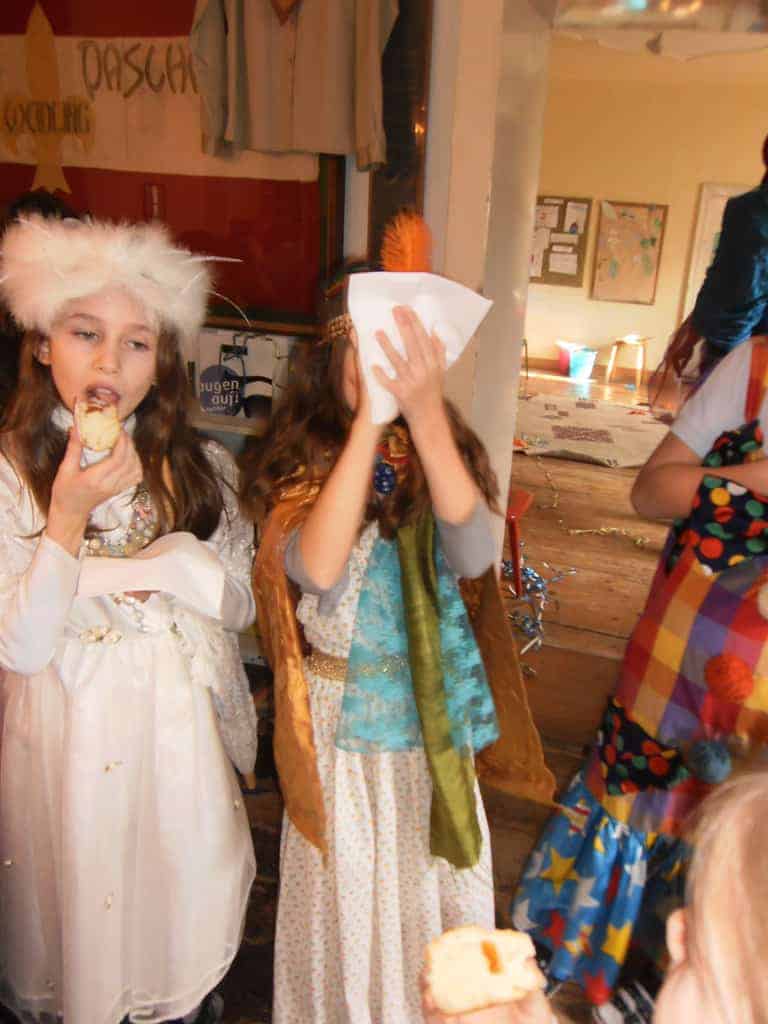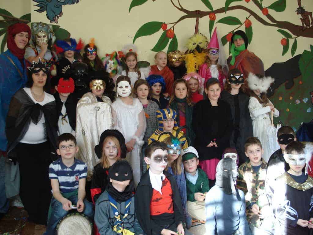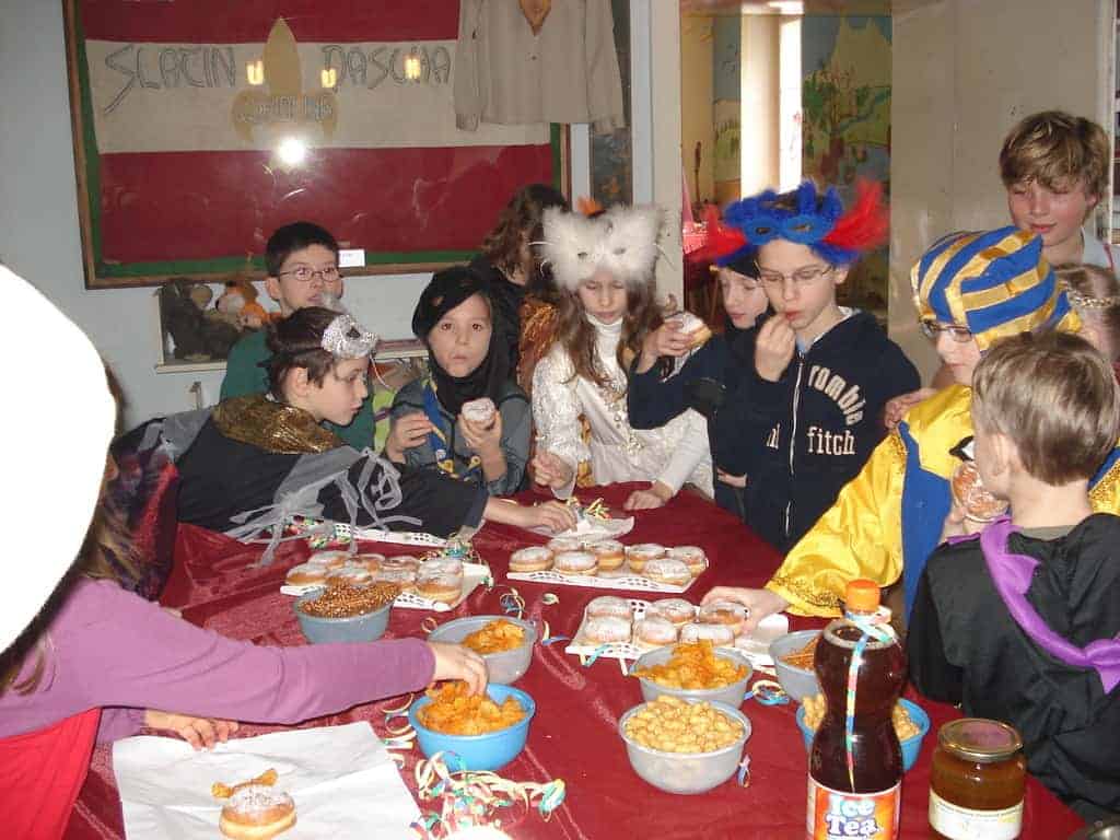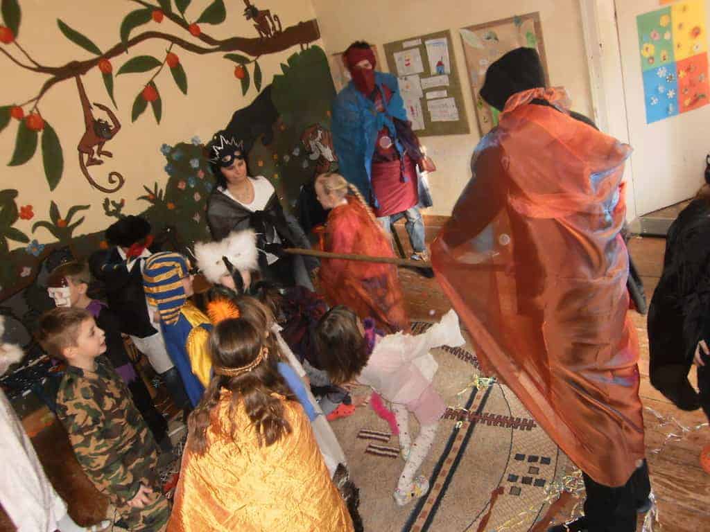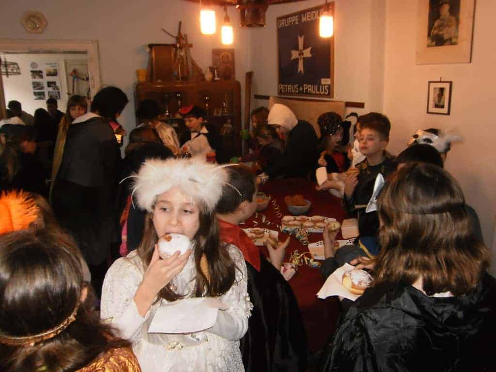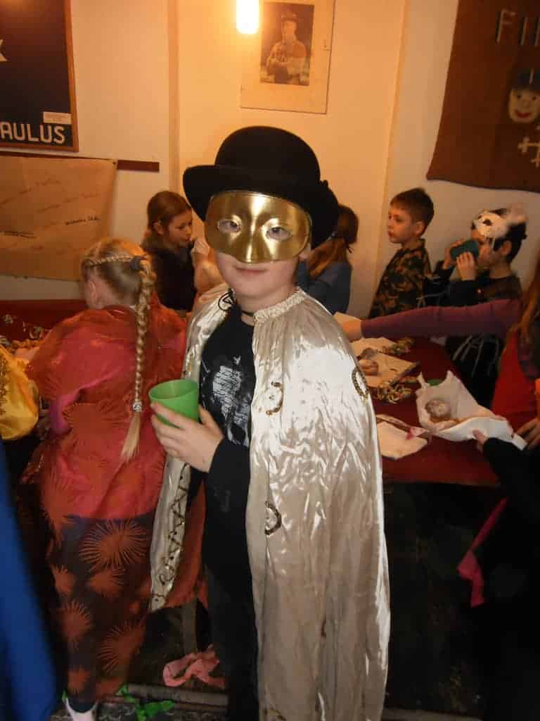 Unser heuriges Faschingsfest war eine Reise nach Venedig zum berühmten Karneval. Natürlich waren alle stilecht verkleidet und haben alle Abenteuer auf dem Weg dorthin bravorös gemeistert. Ob auf einer zusammengefalteten Zeitung zu tanzen oder liegend unter dem Limbostab durchgezwängt – es wurde mit großem Gelächter weitergemacht. Dazwischen haben sich alle mit Krapfen und Leckereien gestärkt.